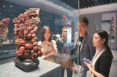 為了讓觀眾更直觀地了解石雕的文化和藝術內核,國風藝術館在展覽期間還舉行了“大師帶你看國石”的導覽活動。五位壽山石雕中國工藝美術大師集體亮相展廳,以面對面交流的形式,以壽山石雕為例,從石種、技藝、題材、意境等方面,系統闡述石雕的創作過程及衍生知識,為深圳以及珠三角地區的收藏家、藝術愛好者及市民了解四大國石打下了基礎。(記者 楊端端)
