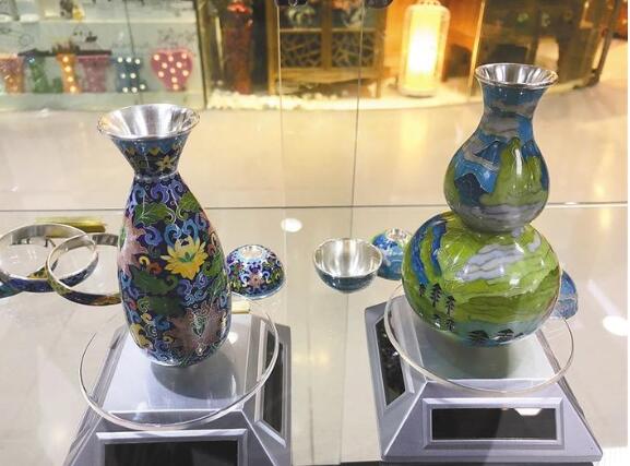 ▲掌上乾坤純銀掐絲景泰藍酒具。