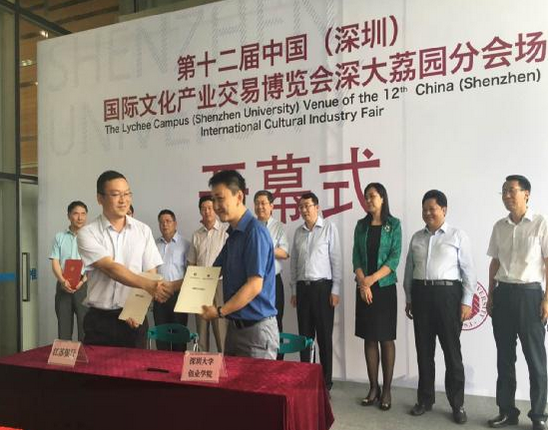 第十二屆中國(深圳)國際文化產業交易博覽會開幕當天,江蘇銀行深圳分行與深圳大學簽署《江蘇銀行深圳-深圳大學創業學院戰略合作協議》。此舉標志著江蘇銀行在支持深圳本地高校教育、創業及文化產業邁出了重要一步。