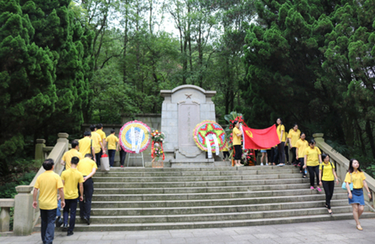 方志敏烈士墓建于1962年,建成于1965年,毛澤東主席親自題寫墓碑:“方志敏烈士之墓”。墓道有11層157級臺階,用花崗巖砌成,寓意為方志敏烈士1924年入黨后,為共產主義事業奮斗的11個春秋,1931年任贛東北特區蘇維埃主席至犧牲時的1570個日日夜夜。在桂衍勝總的帶領下,全體人員登上157級臺階,前往瞻仰方志敏烈士墓。墓前,全體人員重溫了革命先烈的偉大事跡,桂衍勝總最后總結發言,以黨課的形式讓大家領略當年的悲壯激烈和取得的不易勝利,再次堅定理想信念,凈化心靈。