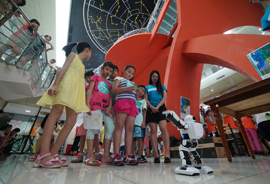 在春晚上舞臺上跳舞的機器人,相信大家依然記憶猶新。而在當天的活動中,也有兩臺跳舞機器人也受到了小朋友們的追捧。金雞獨立、俯臥撐、翻筋斗,各種高難度的動作統統難不倒這兩臺動作靈活的機器人。據了解,這兩臺機器人除了能自動跳舞外,還能通過遙控器,在小朋友的操作下做出各種高難度動作。樂聚(深圳)機器人技術有限公司的工作人員表示,通過手動操控機器人不僅鍛煉了孩子的想象力和動手能力,啟迪與激發了他們的科技創新意識和興趣,還讓孩子們體驗了科技的魅力。