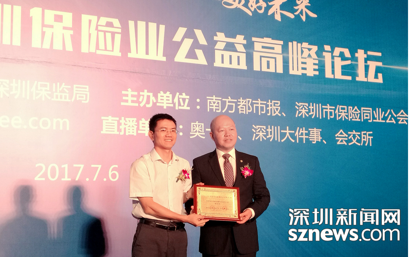 深圳新聞網訊 回歸風險保障,穩固美好未來。7月6日,由深圳市金融辦、深圳保監局指導,深圳市保險同業公會聯合南方都市報社共同舉辦的2017年深圳保險業公益高峰論壇在福田召開,平安人壽深圳分公司榮獲“2017深圳保險精準扶貧功勛單位”稱號,總經理賴劍文獲“2017深圳保險業愛心人物”獎。