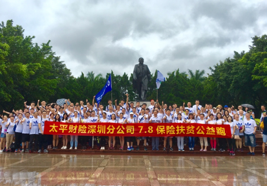 活動期間,深圳分公司積極組織員工參加公益跑活動,每日捐贈里程。7月8日當天,深圳分公司特別組織公司數百名員工至蓮花山公園開展“7.8公里扶貧公益跑”活動,縱使天降驟雨依然抵擋不住太平員工踐行公益的熱情,為雨中的公園增添了一道靚麗的“太平彩虹”。