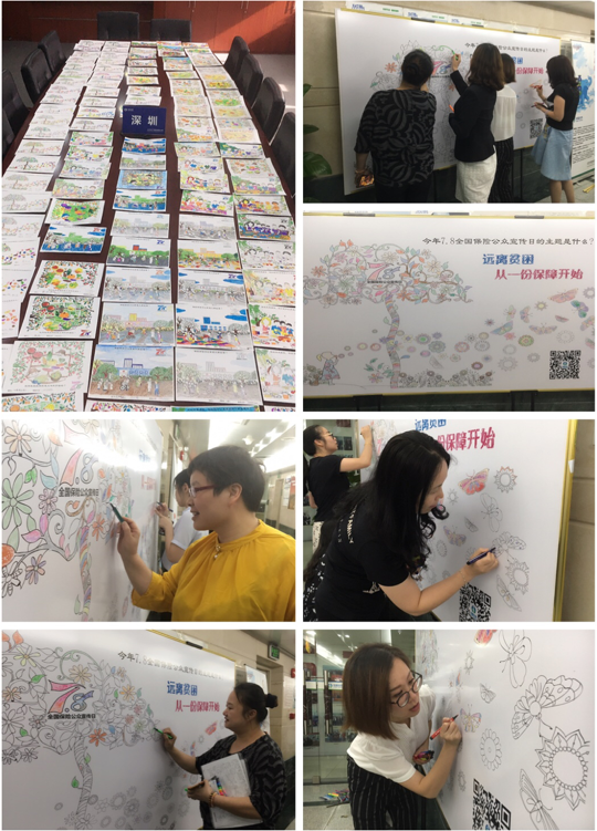 深圳分公司在職場大廳設置了填色墻,供員工及客戶共同上色,為生活添色彩。同時,深圳分公司面向廣大員工及客戶發放大量填色卡,舉辦填色贏獎品活動,深受民眾的喜愛與好評。