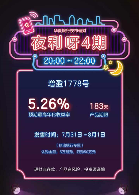 盛夏一到,夜市開始紅火,銀行也來湊熱鬧。華夏銀行推出預期年化收益率5.26%的“夜市”理財產品。