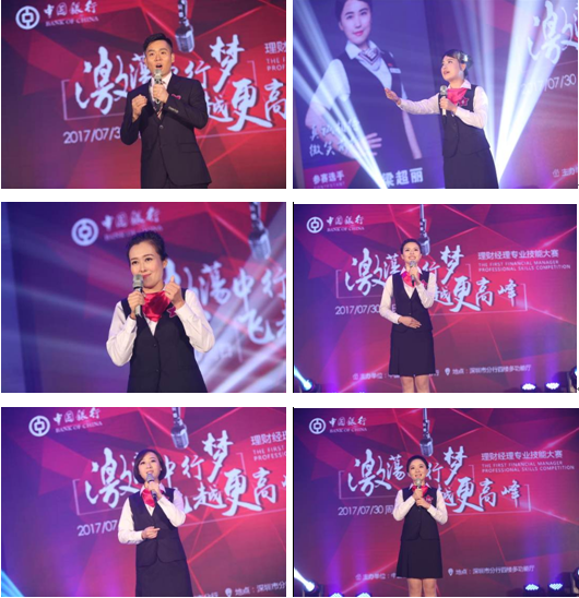 在第一輪的“服務(wù)之星”項(xiàng)目角逐中,來自羅湖、南山、福永、東門、蛇口、龍華、布吉、龍崗等各區(qū)域支行的12位理財(cái)經(jīng)理通過聲情并茂的演講,從自身成長、客戶案例分享、服務(wù)心得等各方面展現(xiàn)其服務(wù)水準(zhǔn)。