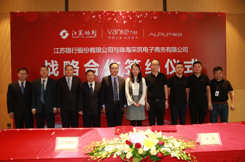 11月28日,采筑電商平臺發布會暨與江蘇銀行戰略合作協議簽約儀式在前海萬科國際會議中心成功舉行。萬科集團副總裁王蘊女士和江蘇銀行運營總監趙輝先生受邀出席儀式并致辭,江蘇銀行行長助理兼深圳分行行長李敏與采筑電商平臺總經理都軍代表雙方簽署戰略合作協議。總行公司業務部周愛國總經理、深圳分行張慶光副行長等一行出席發布會暨簽約儀式。