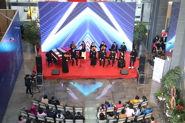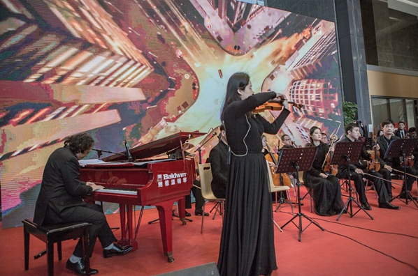 琴聲時而舒緩如流泉,時而激越如飛瀑,時而清脆如珠落玉盤,時而低回如呢喃細語……鋼琴與提琴交織,管樂和弦樂共舞,是的,你沒有聽錯,這是古典交響樂在午間響起,在福田CBD,在白領云集的辦公樓,在招商銀行深圳分行大廈的營業(yè)大廳里。2018年2月6日,招商銀行深圳分行大廈迎來了福田愛樂樂團午間音樂會新年的第三場演出,也是該樂團自2015年創(chuàng)辦午間音樂會以來的第84場演出。高雅的藝術氣息讓原本單調(diào)的午間趣味橫生,動人的場景、美妙的樂音,在這里一一定格。