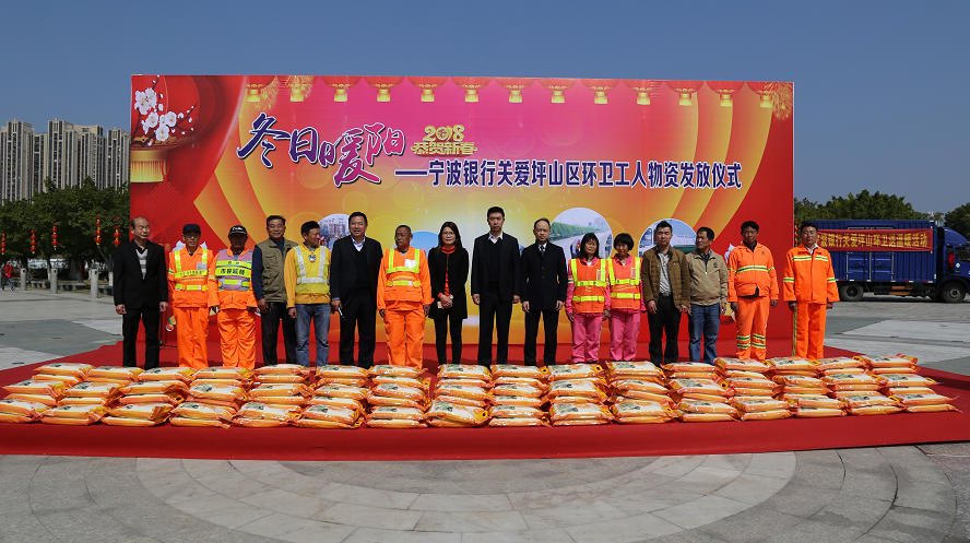 春節臨近,為了表達對環衛工人的親切慰問,感謝他們一年來的辛勤付出,在坪山區城市管理局的推動,在寧波銀行深圳分行的支持下,舉行“冬日暖陽”寧波銀行關愛環衛工人物資發放活動,坪山區委常委、區人民政府副區長、區政府黨組副書記代金濤同志及寧波銀行深圳分行副行長李紅波對環衛工人致以深切慰問,向全坪山區環衛工人約2500人發放大米;在維園餐飲管理有限公司及金龜露營小鎮的支持下,舉行了“情系環衛工 益起行”活動,邀請了坪山區108位環衛工人代表共進愛心團年飯,場面溫馨、熱鬧。