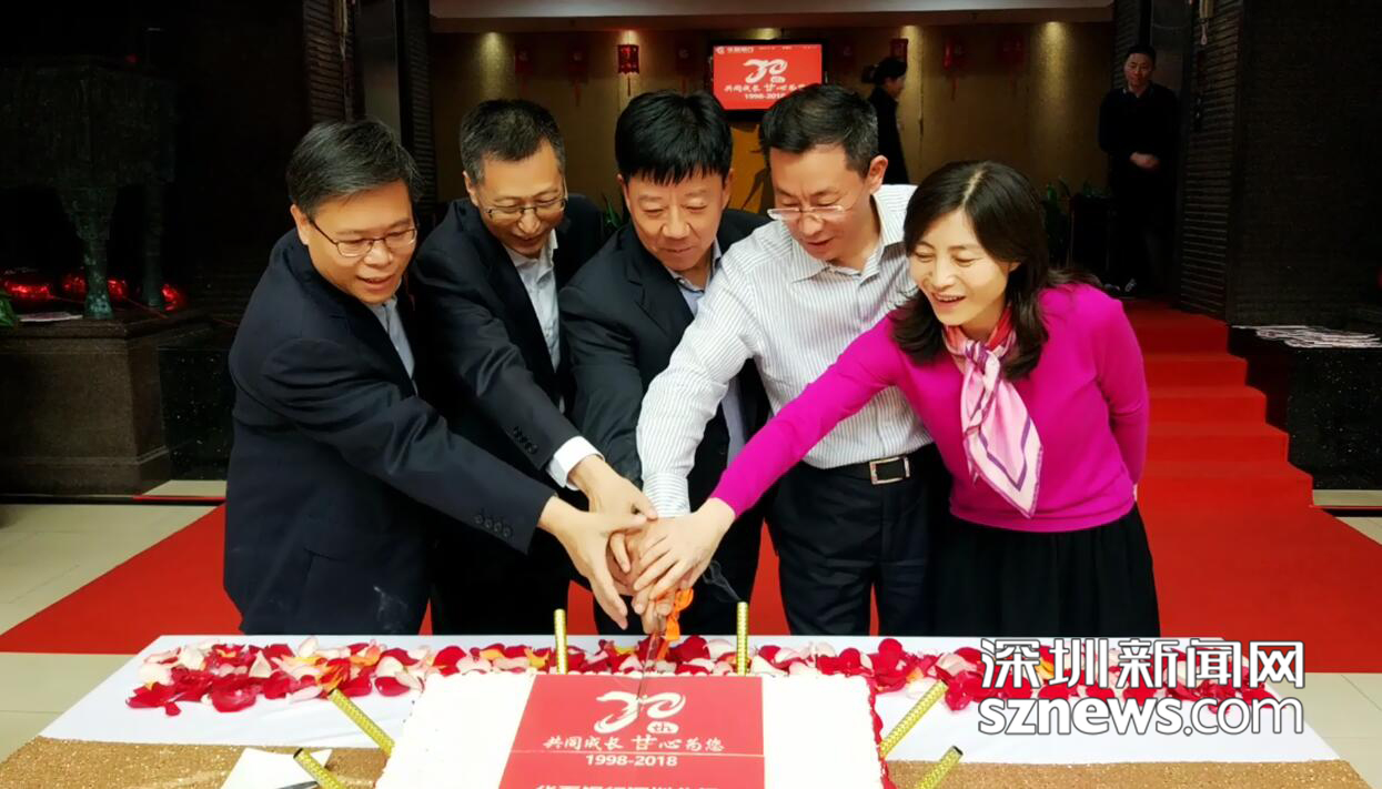 華夏銀行分行領(lǐng)導(dǎo)班子共同切下寓意美好愿景的20周年蛋糕