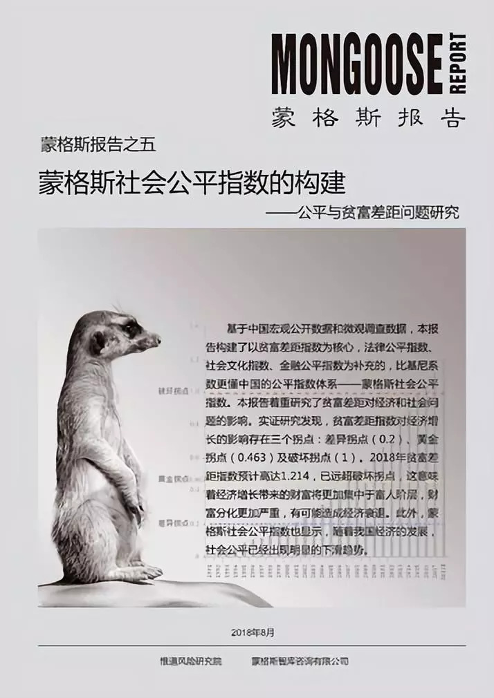 2017年7月,惟道風(fēng)險(xiǎn)研究院攜手多位來(lái)自學(xué)術(shù)界、企業(yè)界的專家學(xué)者,在朱小黃博士及中央財(cái)經(jīng)大學(xué)商學(xué)院副院長(zhǎng)林嵩教授的主持下,成立了蒙格斯社會(huì)公平指數(shù)研究課題組,歷時(shí)一年精耕細(xì)作,構(gòu)建了以貧富差距為核心,綜合考量法律、社會(huì)文化及金融等影響公平維度的蒙格斯社會(huì)公平指數(shù),并開發(fā)了貧富差距與經(jīng)濟(jì)增長(zhǎng)的拐點(diǎn)體系。