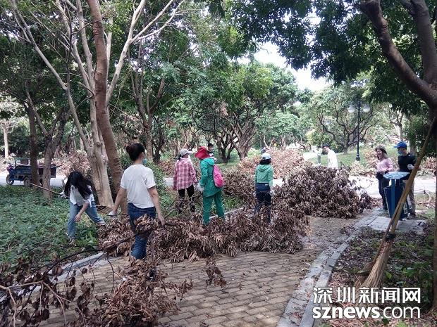 9月22日,臺風過后小長假的第一天,深圳農村商業銀行積極響應深圳市城管局和人大代表“人人行動,一起清潔美麗家園”的倡議,在全行發起了“愛心清理中心公園,還深圳一片干凈祥和”的志愿活動,全行70多名員工和家屬自發組成義工隊,利用中秋小假期來到深圳市中心公園,積極參與搬運殘枝斷木,清潔落葉垃圾的活動。在清理公園路障過程中,深圳農商行員工分工明確,男士負責倒塌樹枝、樹樁的疏通與清理,女士則主要負責零散枝丫、落葉的清掃。而當清理至公園受災最嚴重區域時,深圳農商行義工隊成員齊上陣,兩手并用,或是用力拖拽巨大的倒塌樹枝,或是通力協作抬抱沉重的實木樁,來來回回不斷將攔路樹枝收拾整齊歸攏到路邊,以方便公園管理處人員后續處理。此次清理工作持續了約3小時,基本恢復了公園中心區綠道的通暢與整潔。路過的行人得知他們是義務進行清理時,無不駐足稱贊,而參與此次活動的所有深圳農商行人也同樣為自己感到驕傲。