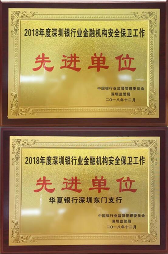 華夏銀行深圳分行榮獲“2018年度深圳銀行業金融機構安全保衛工作先進單位”