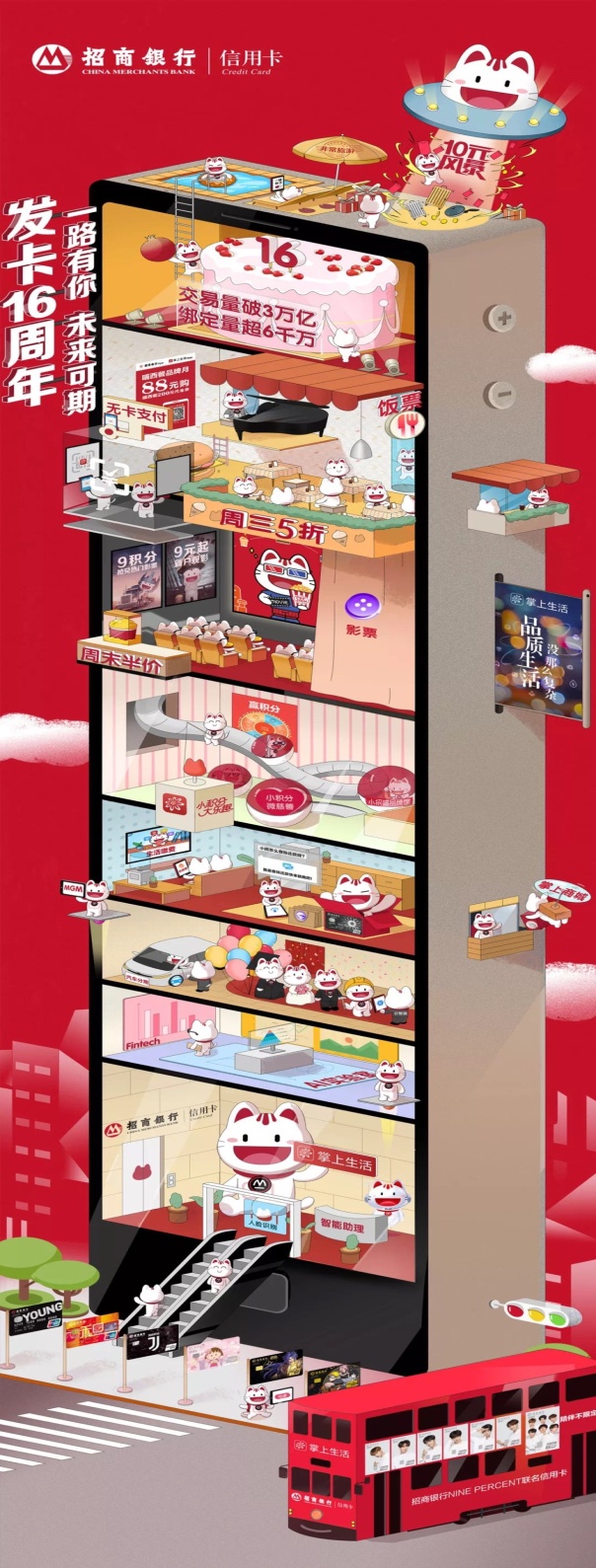 據悉,圖里這棟手機大廈,承載了招行信用卡和客戶們的共同回憶。各種靚麗的卡片、飯票、影票、旅游活動,承包了客戶們的吃喝玩樂;貼心的智能客服和 AI實驗室,為客戶提供了溫暖的服務;還有客戶們都熟悉的10元風暴、水電煤等生活繳費、智能助理、掌上商城、積分禮遇等。