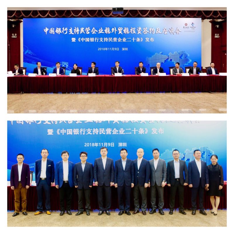 今年11月1日,習近平總書記召開民營企業座談會后,中國銀行將支持民營企業發展擺在了更加重要的位置。11月9日,“中國銀行支持民營企業穩外貿穩投資簽約及座談暨《中國銀行支持民營企業二十條》發布會”在中國銀行總行主會場及9個分會場同步舉行。中行深圳市分行按照總行統一部署,邀約邁瑞醫療、比亞迪、海普瑞、歐菲科技、欣旺達、信維通信、立訊精密、長園集團、華強集團、裕同科技等10家民營企業參會,并簽署戰略合作協議。11月15日,中行深圳市分行召開黨委(擴大)會議,研究進一步全面加強黨的建設,集中學習了習近平總書記視察廣東和在民營企業座談會上的重要講話精神,提高對支持民營企業發展的思想認識水平,將支持民營企業發展作為貫徹落實黨的十九大精神和總行發展戰略的具體行動。11月23日,中行深圳市分行召開《中國銀行支持民營企業二十條措施》政策解讀及宣導工作會議,提出落實總行“支持民營企業二十條”的十項重點工作。