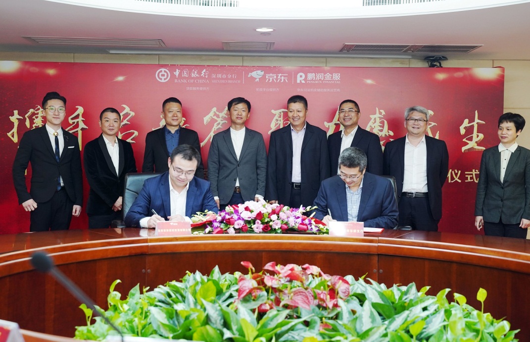 深圳新聞網訊 2月14日,中國銀行深圳市分行與北京京東世紀貿易有限公司(以下簡稱“京東”)在深圳舉辦京東拍賣平臺金融貸款服務合作協議簽約儀式。中國銀行深圳市分行葉新階副行長、京東集團韓成信副總裁、京東司法拍賣輔助服務運營商深圳市鵬潤金服信息咨詢有限公司范文政總經理以及相關人員出席了簽約儀式。
