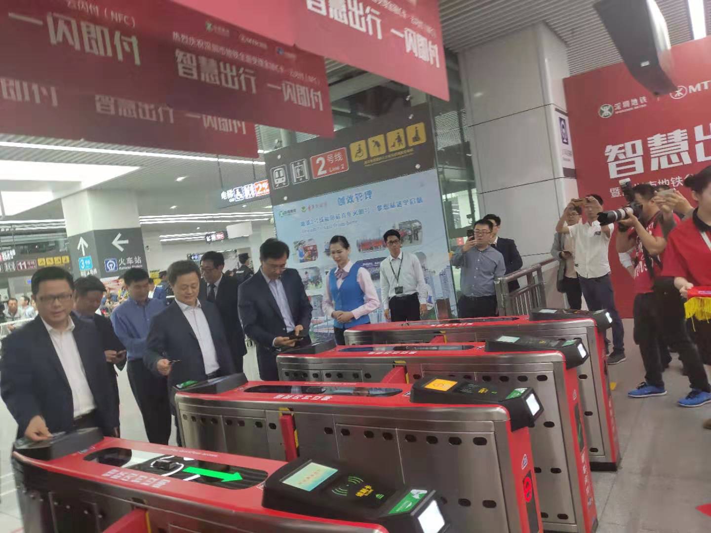3月1日上午,五洲賓館內舉行了“深圳市地鐵金融IC卡過閘服務”的啟動儀式。相關領導出席啟動儀式,并共同點亮LED燈幕,宣告深圳市地鐵8條線路的所有車站正式啟用過閘功能。