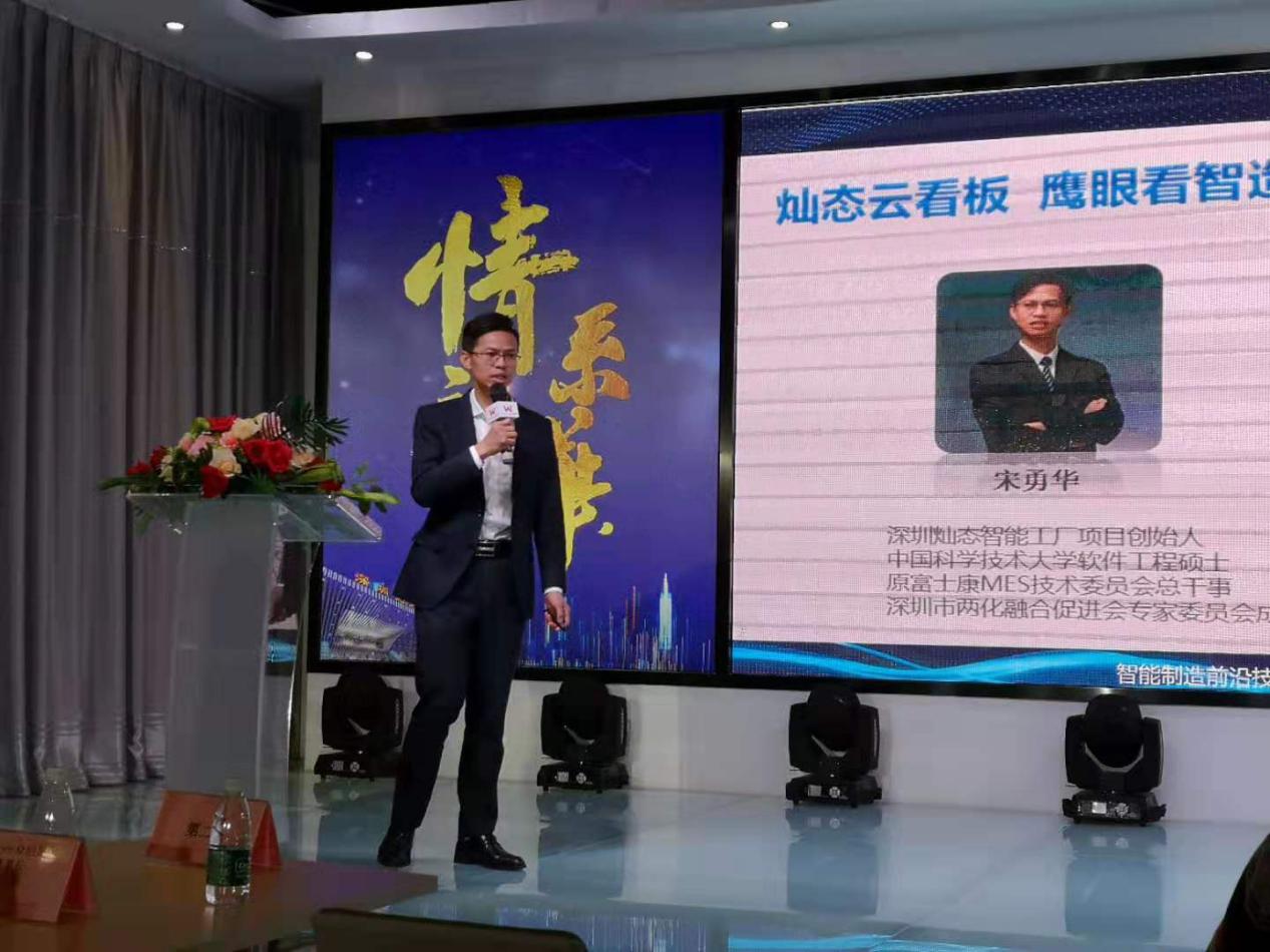 燦態信息總經理宋勇華是原富士康集團MES技術委員會總干事,他以18年富士康智能制造系統實踐經驗、100多個工廠信息化智能項目沉淀工作經歷介紹了面向中小企業的智能制造落地方案。其解決方案依據他原創的三屏看智造理念,即“燦態鷹眼云看板” SaaS產品,打造符合企業發展實際需要和高性價比的智能化平臺,助力中小企業智能化務實落地。