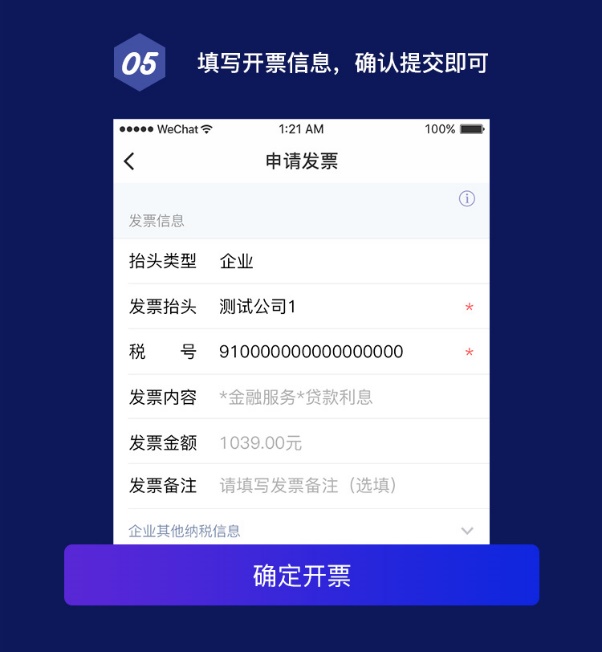 過去開票企業向我行申請發票,從費項核對、申請開票、等待開票、領取紙質發票,至少需等待1周時間,還要多次往返網點柜臺或承擔郵寄成本。現在,企業貸款結息劃扣后就能在企業A PP在線查詢結息交易金額、自助獲取電子發票,實時下載領取到企業 APP或郵箱。免排隊、易領取、保管方便。開票 So Easy!現免費提供!