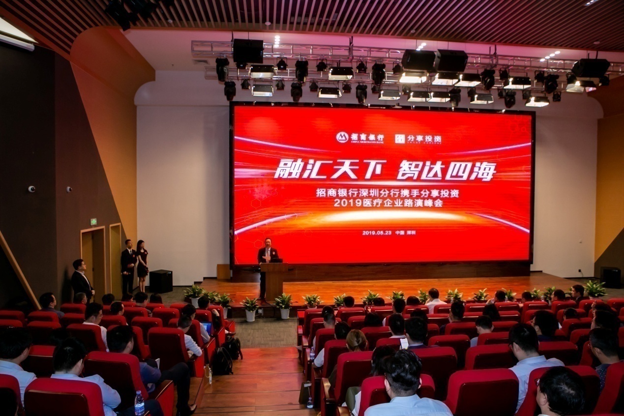 2019年5月23日,招商銀行深圳分行攜手分享投資在分行大廈成功舉辦“融匯天下,智達四海”——招商銀行深圳分行攜手分享投資2019醫療企業路演峰會。