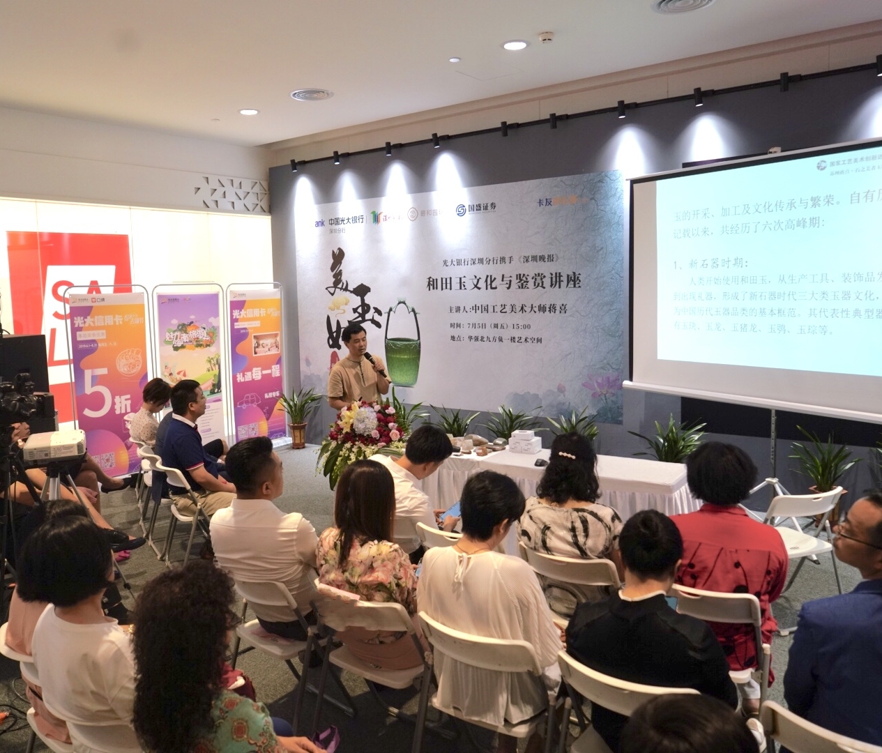 在講座中,蔣喜先生圍繞美玉初探;師古而不擬古——貴在創新等內容進行了分享,對當代玉雕創作中的師古與創新進行了深入淺出的講解,讓現場嘉賓獲益匪淺。在講座現場,光大銀行深圳分行的工作人員為到場嘉賓介紹了個人理財、私行業務、出國金融、信用卡業務等多個產品業務,讓聽眾對光大銀行金融產品有了更深入的了解。