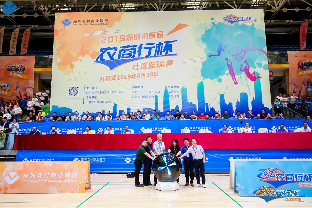 開幕現場,深圳市羅湖區政府副區長莊睿寧,深圳農村商業銀行董事長李光安、行長袁捷,深圳市文化廣電旅游體育局群眾體育處處長解汝成等領導嘉賓共同開啟激光啟動球,宣布2019深圳市首屆“農商行杯”社區籃球賽決賽賽程正式啟動,現場400多名社區籃球隊員,近千名觀眾共同見證。