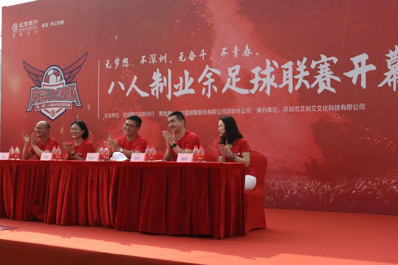 北京銀行深圳分行副行長楊運廣為開幕式致辭,他表示,作為一家中外資本融合的新型股份制銀行,北京銀行深圳分行在成立的11年里,堅持為廣大客戶提供涵蓋公司、零售、私人銀行、國際、同業、投行等全面綜合的金融服務。同時還努力為大家搭建交流平臺,創造契機、加強溝通。此次“京彩生活杯”八人制業務足球聯賽便是北京銀行深圳分行踐行這一客戶服務理念的有力注解。