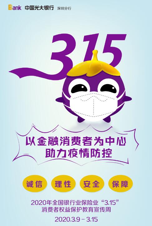 近日,2020年“3·15消費者權益保護教育宣傳周”正式啟動。中國光大銀行深圳分行積極行動,在滿足特殊時期客戶服務需求的同時,以“以金融消費者為中心,助力疫情防控”為主題,通過做好線上金融知識宣傳,創新金融服務模式,推動消費者權益保護工作。