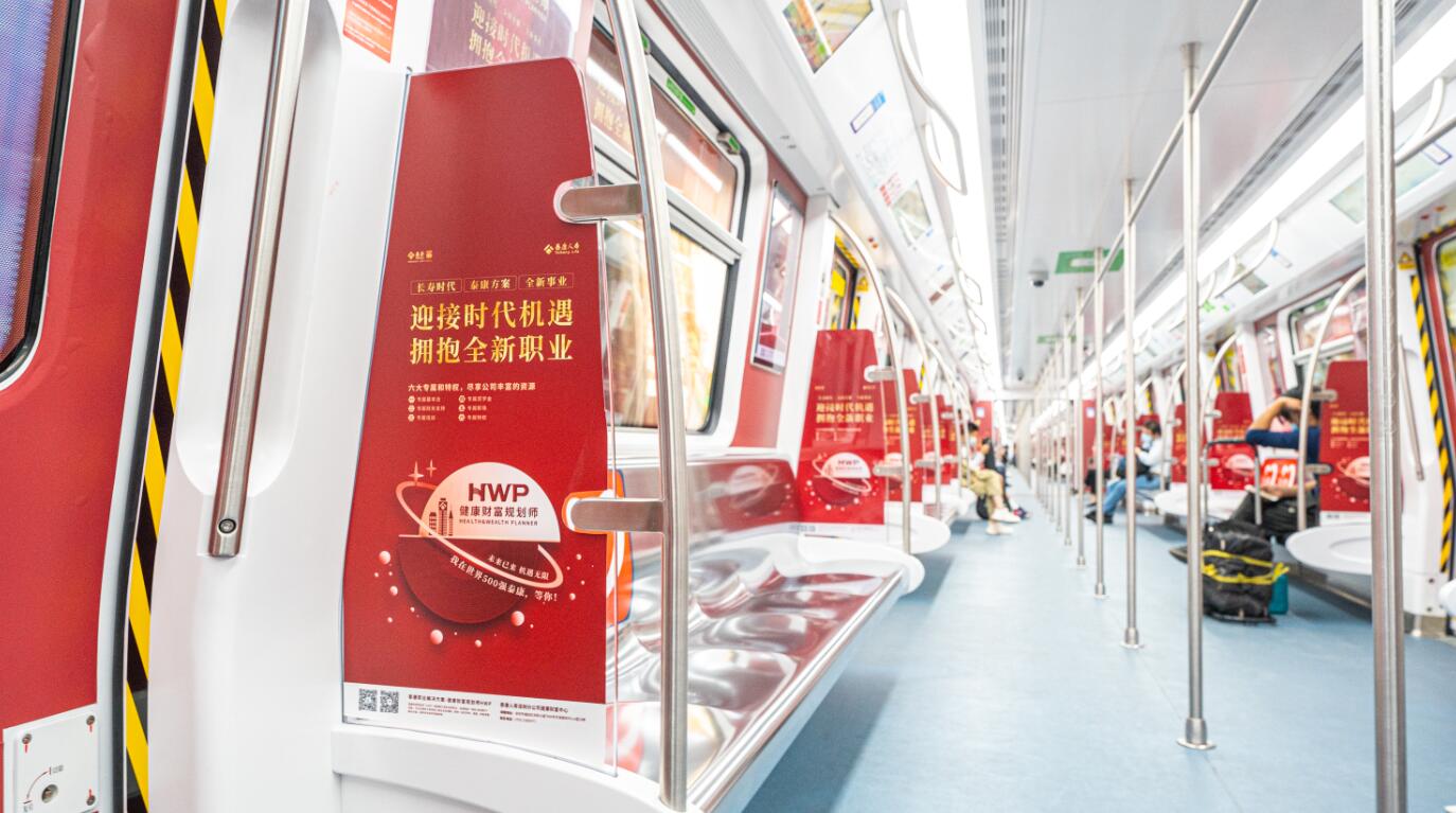 除招募主題專列地鐵外,燕南站、竹子林站、華僑城站等福田區核心站點的6塊燈箱廣告也全部用來投放健康財富規劃師(HWP)招募廣告,預計每天將有數十萬乘客與6塊燈箱廣告親切相對。