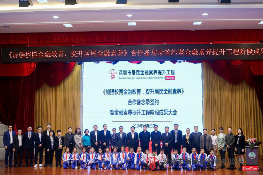 深圳新聞網·見圳客戶端2020年12月28日訊 近日,由中國人民銀行深圳市中心支行、深圳銀保監局、深圳證監局、深圳市地方金融監督管理局、深圳證券交易所、深圳市教育局、福田區人民政府主辦,深圳市民政局協辦的《加強校園金融教育,提升居民金融素養》合作備忘錄簽約暨金融素養提升工程階段成果大會在福田實驗僑香學校舉行。深圳市政府、相關機構領導,市各金融機構代表、市區中小學校領導、街道社區負責人以及僑香學校的師生們等逾200人出席了大會。