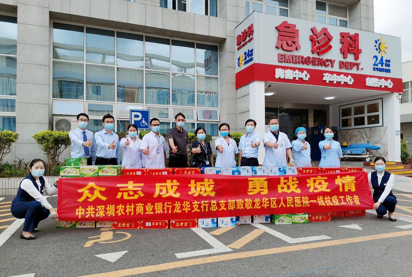 6月9日,深圳農商行龍華支行積極履行作為金融企業的社會責任感,向龍華區人民醫院的醫護人員送上了綠豆湯、酸奶及涼茶等慰問品,向持續戰斗在抗疫一線的醫護工作人員致敬。