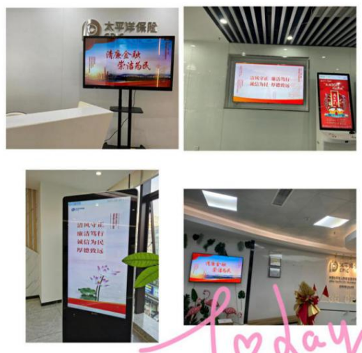 為擴大宣教影響力,分公司全轄各網點均在前臺等顯著位置展示“清廉金融文化建設年及核心理念”宣傳海報,利用機構網點布局、直面消費者群體的特點,發揮機構清廉金融文化的公眾宣傳能力,提升宣傳效果和影響力,加大社會監督責任。