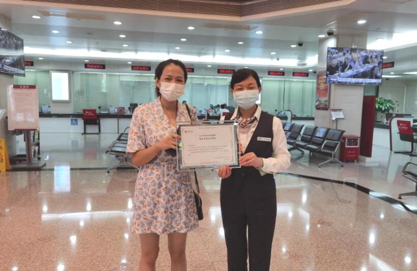 深圳中行工作人員為購(gòu)買客戶頒發(fā)“深圳市地方債券柜臺(tái)首發(fā)紀(jì)念憑證”