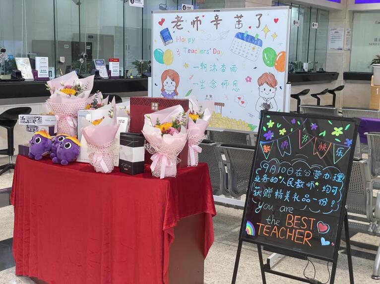 深圳新聞網2021年9月10日訊 (記者 朱琳 通訊員 樓蓉 沈婷)金秋九月,秋高氣爽,為迎接第37個教師節,深圳分行開展“感恩教師節”系列活動,部分網點通過教師節專屬活動,為廣大教師客戶送上了節日的鮮花。9月10日,在深圳分行營業部辦理業務的人民教師均可獲贈精美禮品一份。