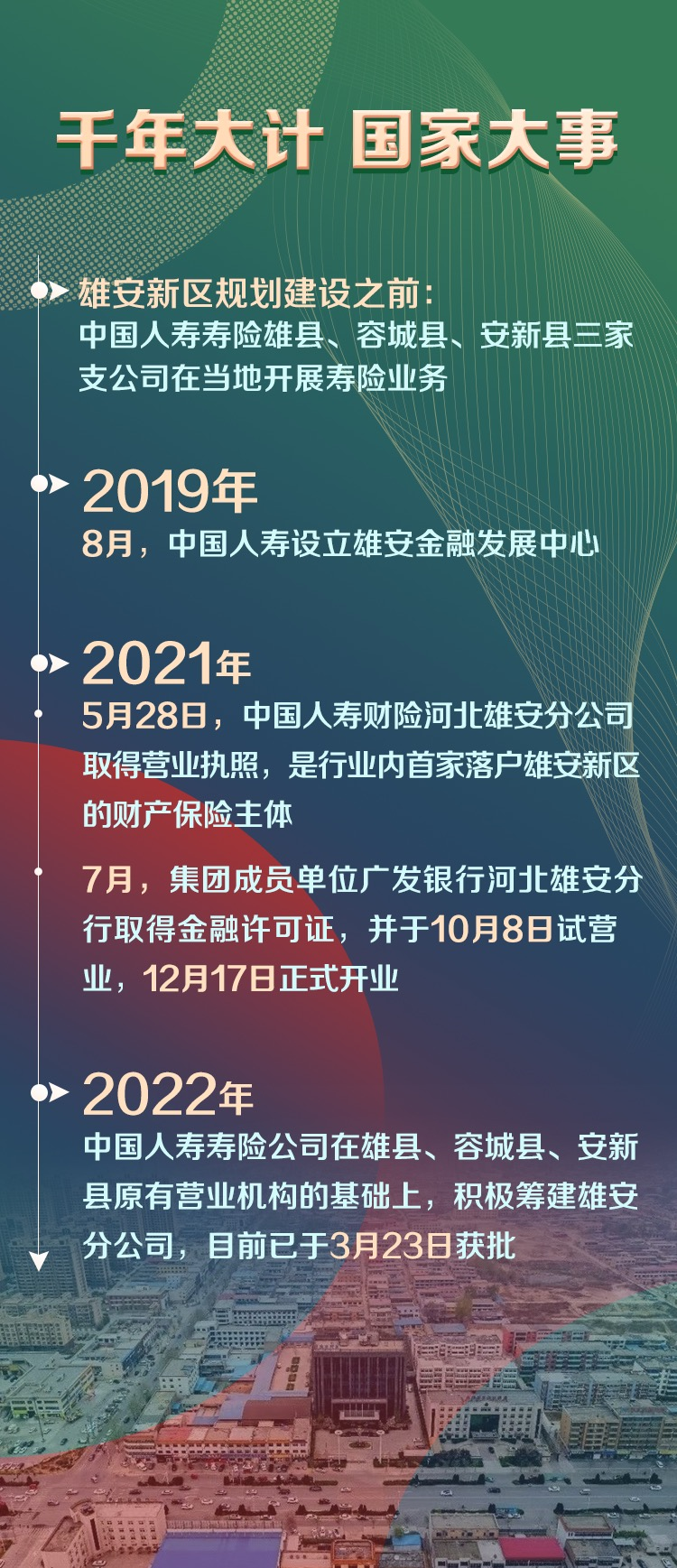 深圳新聞網2022年4月1日訊 設立雄安新區(qū),對承接北京非首都功能、探索人口密集地區(qū)優(yōu)化開發(fā)模式、調整優(yōu)化京津冀空間結構、培育推動高質量發(fā)展和建設現代化經濟體系的新引擎具有重大現實意義和深遠歷史意義。作為金融央企,中國人壽緊跟國家發(fā)展步伐,時刻保持“趕考”的清醒和堅定,在保險、投資、銀行三大業(yè)務板塊上協同發(fā)力,高標準高質量服務雄安新區(qū)建設。