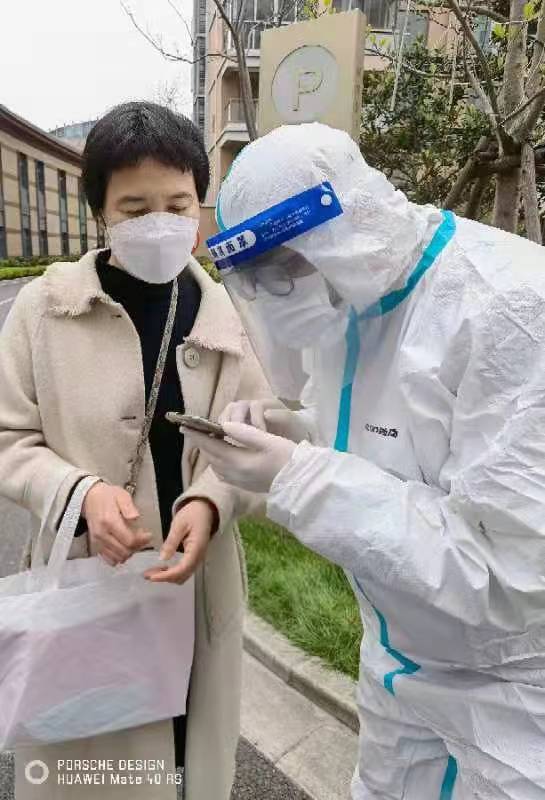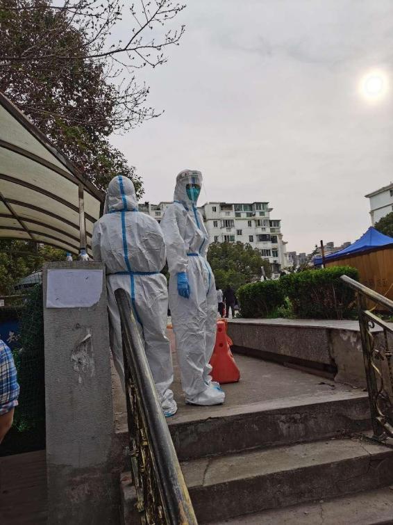 同樣化身“大白”的還有劉濮銘,他協助醫護人員對小區做抗原檢測,幫7棟樓200余老人做二維碼登記、檢測,在小區有樓棟確診后迅速加入守樓執勤,維持秩序,防止交叉感染。