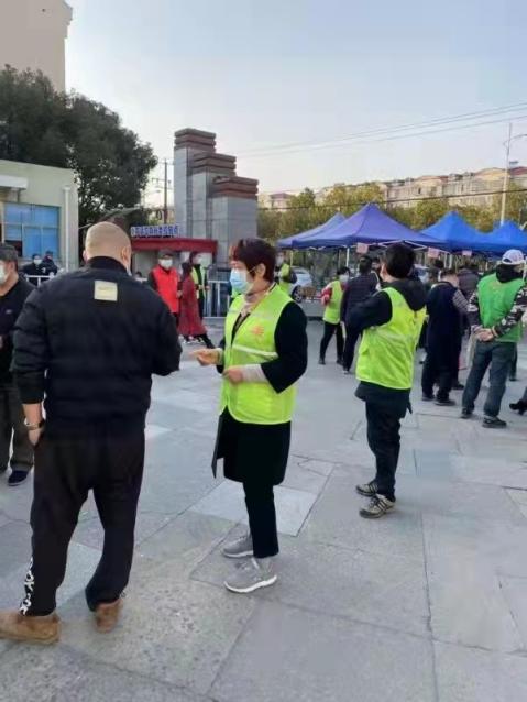 50多歲的老黨員郭秀芳,帶頭參與街道核酸檢測引導工作,現場忙著維持秩序、解答社區居民咨詢,雖然一站就是幾個小時,但她還是熱情地面對每個居民。