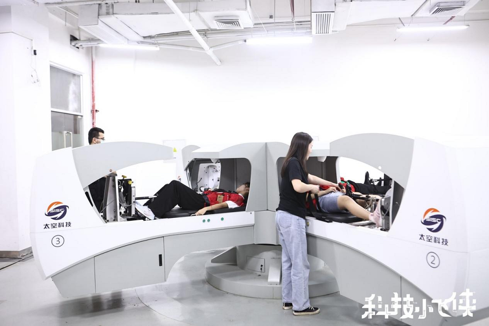 除了太空廢棄物處理實(shí)驗(yàn),航天訓(xùn)練體驗(yàn)也得到了孩子們的認(rèn)可。活動現(xiàn)場,短臂離心機(jī)、模擬失重床等設(shè)備模擬出了航天員的日常訓(xùn)練場景,還沒等講解老師解說完,就有不少小飛俠們歡呼雀躍,迫不及待地想體驗(yàn)航天員日常訓(xùn)練,旋轉(zhuǎn)、漂浮,小朋友們玩得不亦樂乎,在玩樂的同時(shí),也學(xué)習(xí)到了更多航天知識。