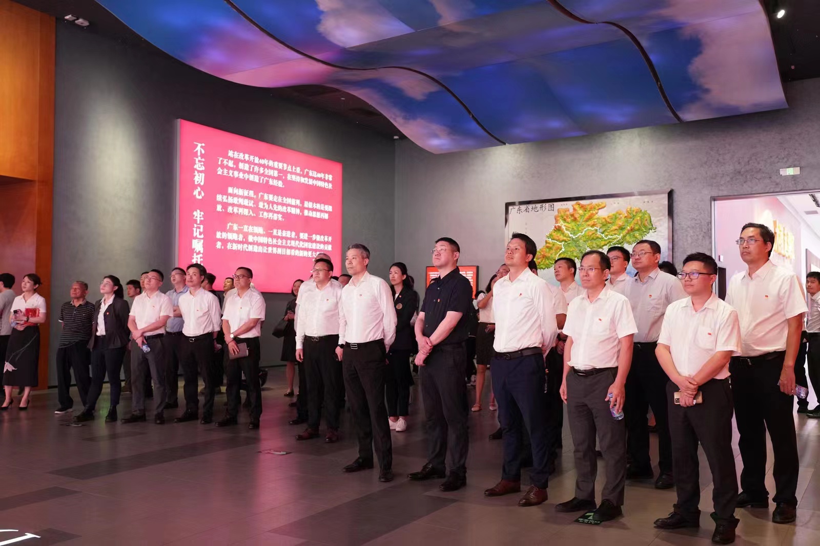展廳里,大家目睹了從牌坊矮屋到高樓林立、從漁船耕牛到高架高鐵、從貧瘠的土地到國際化大都市的變化,生活強(qiáng)烈對比,歷史場景歷歷再現(xiàn),見證了南粵大地改革開放四十年來的發(fā)展與榮光,全體黨員的驕傲和自豪之情油然而生。