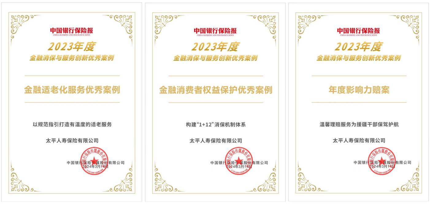 深圳新聞網(wǎng)2024年3月15日訊(記者 朱琳 通訊員 宋超群)3月14日,由《中國銀行保險報》主辦的2024金融消保與服務(wù)創(chuàng)新主題活動在京舉辦,現(xiàn)場公布了2023年度金融消保與服務(wù)創(chuàng)新優(yōu)秀案例名單,太平人壽三項案例榜上有名,分別入選金融適老化服務(wù)優(yōu)秀案例、年度影響力理賠案例、消費者權(quán)益保護優(yōu)秀案例。