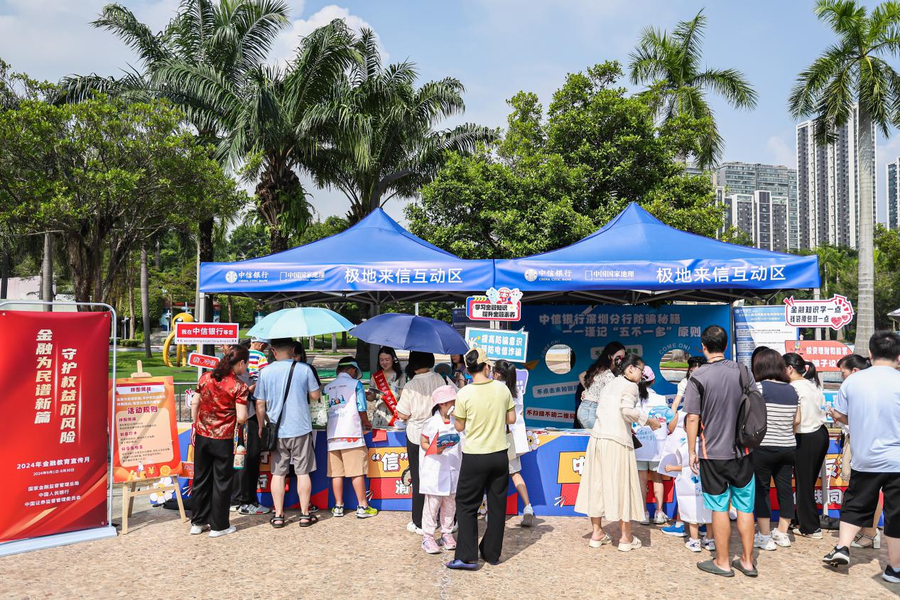 結(jié)合2024年“金融教育宣傳月”主題,在金融消保展位前,中信銀行深圳分行還以金融消保知識互動問答等方式,為市民帶來趣味金融學(xué)習(xí)體驗,幫助市民正確理解認(rèn)識金融風(fēng)險,進(jìn)一步提升風(fēng)險防范意識和能力。該行還同時開展了反詐宣傳活動,“反詐宣講小課堂”吸引了不少親子家庭的注意力。工作人員將寓教于樂的消保拼圖游戲與涵蓋金融消費者權(quán)益保護(hù)等內(nèi)容的金融知識相結(jié)合,全方位、多角度地普及反詐等金融知識,在輕松愉悅的氛圍中將金融風(fēng)險防范意識傳遞給廣大市民。