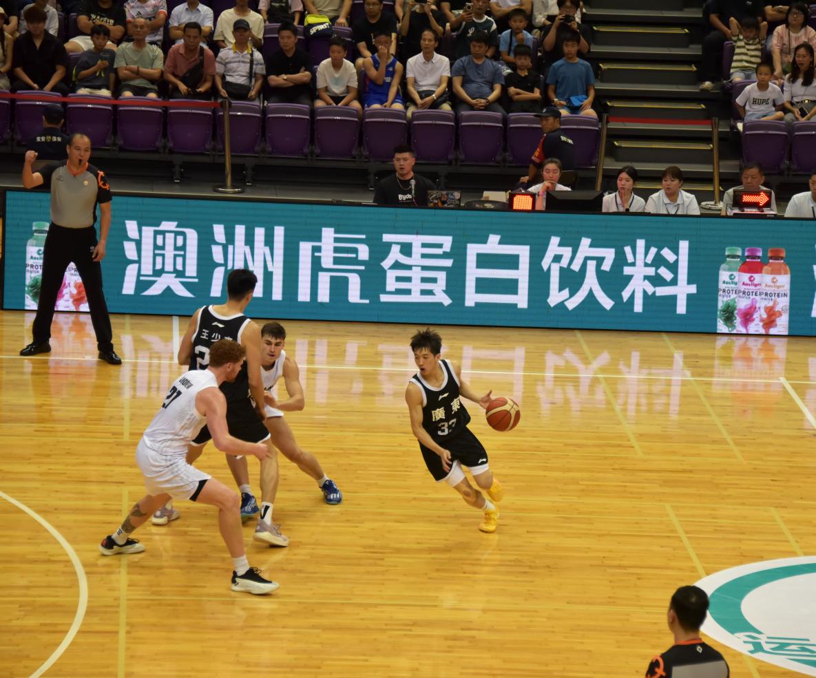 在爭冠大戰中,廣東全運男籃開局先聲奪人,借助火熱的手感,用外線三分建立了領先優勢,直至第三節,廣東全運男籃一直保持領先。但第四節新西蘭男籃逐漸掌控了場上主動,并在節中實現反超,盡管兩名國手杜潤旺、王浩然不斷追分,但面對新西蘭男籃高強度的防守,最終廣東全運男籃還是以77-82憾負新西蘭男籃,但全隊在深圳球迷面前展現出了頑強的拼搏精神贏得了全場球迷熱烈的掌聲。本場比賽,來自深圳男籃的王浩然拿到了全隊最高的19分,杜潤旺砍下了15分,小將張文逸則貢獻了17分。通過與幾支高水平球隊的較量,剛集結不久的廣東全運男籃逐漸找到狀態,為備戰今年全運會、沖擊男籃項目金牌打下了堅實的基礎。