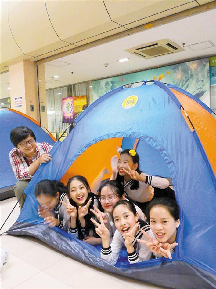 120個小讀者家庭近日受邀來到深圳少年兒童圖書館,開啟一年一度的“圖書館奇妙夜”。往常晚上8點的深圳少年兒童圖書館是讀者離場之時,當晚卻燈火通明,熱鬧伊始。首先迎接小讀者們的是“歡迎晚會”,緊接著,小讀者們進入到圖書館分組閱讀之旅中,他們穿行在帳篷營地之間,享受著奇妙閱讀夜的快樂。