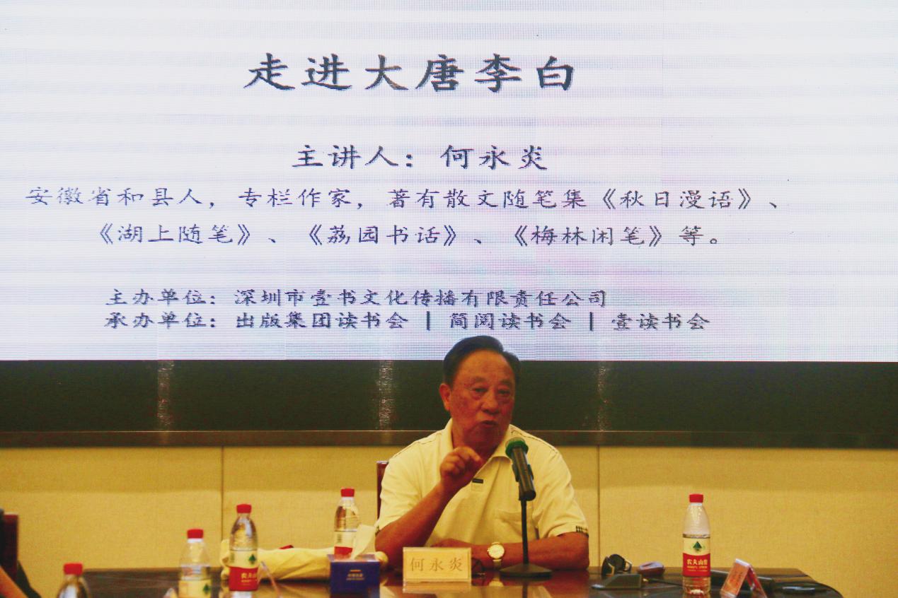 深圳新聞網(wǎng)訊 2019年8月31日下午,“福田區(qū)第三屆文學(xué)精品有聲閱讀藝術(shù)節(jié)”之“唐詩(shī)三百首”專場(chǎng)活動(dòng)“走進(jìn)大唐李白”公益文化講座暨最美唐詩(shī)朗誦會(huì)在簡(jiǎn)閱書吧香蜜湖店三樓多功能室成功舉辦。活動(dòng)由深圳市壹書文化傳播有限責(zé)任公司、深圳市書城文化投資控股有限公司主辦,出版集團(tuán)讀書會(huì)、簡(jiǎn)閱讀書會(huì)和壹讀書會(huì)承辦,本次活動(dòng)吸引了眾多對(duì)中國(guó)傳統(tǒng)文化富有興趣的詩(shī)歌愛(ài)好者,活動(dòng)開始前已座無(wú)虛席,靜候這場(chǎng)關(guān)于李白、關(guān)于詩(shī)歌的文化盛宴。