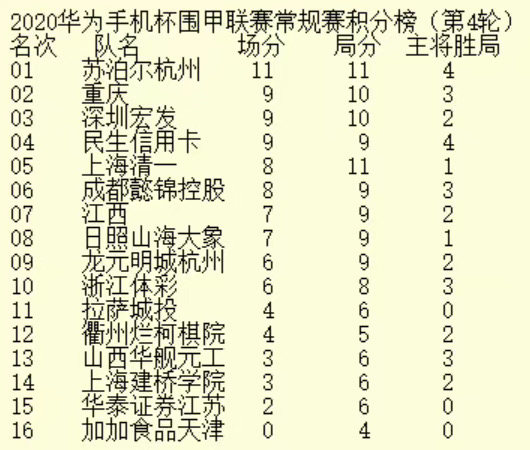 2020華為手機杯中國圍棋甲級聯賽第四輪深圳宏發3:1龍元明城杭州