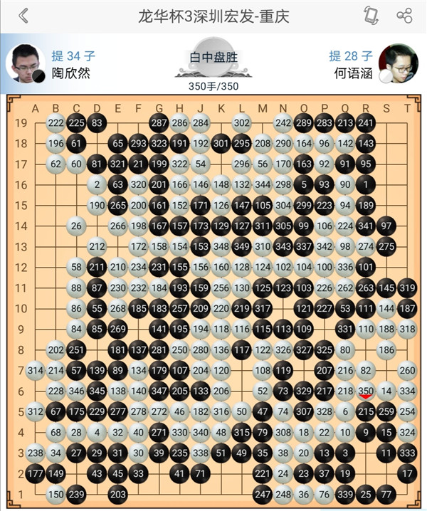 三臺陶欣然執黑對陣小將何語涵,局面一直糾結,官子階段有所失誤,最終白棋獲勝。四臺小將石豫來執白對陣小將李翔宇,白棋進入小官子時候局勢領先,可惜下出了一個小勺子,被黑抓住機會形成小轉換便宜了幾目棋。最終白棋以3/4子差距落敗。