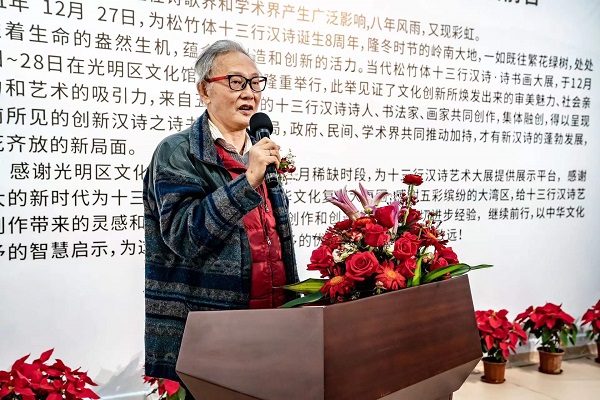 讀特客戶端·深圳新聞網2021年12月29日訊(記者 田志強)近日,國家社科基金項目“當代漢詩創新詩體研究”階段性成果展——十三行漢詩書畫作品展,于光明區文化館成功舉辦。本次展覽集中展示本項目重要研究成果、全國各地新漢詩詩人的原創十三行漢詩之書畫作品等。十三行漢詩創立八年以來,得到了海內外詩人的廣泛關注,在國家社科基金研究團隊精研闡釋的基礎上,得到了學術界的肯定。