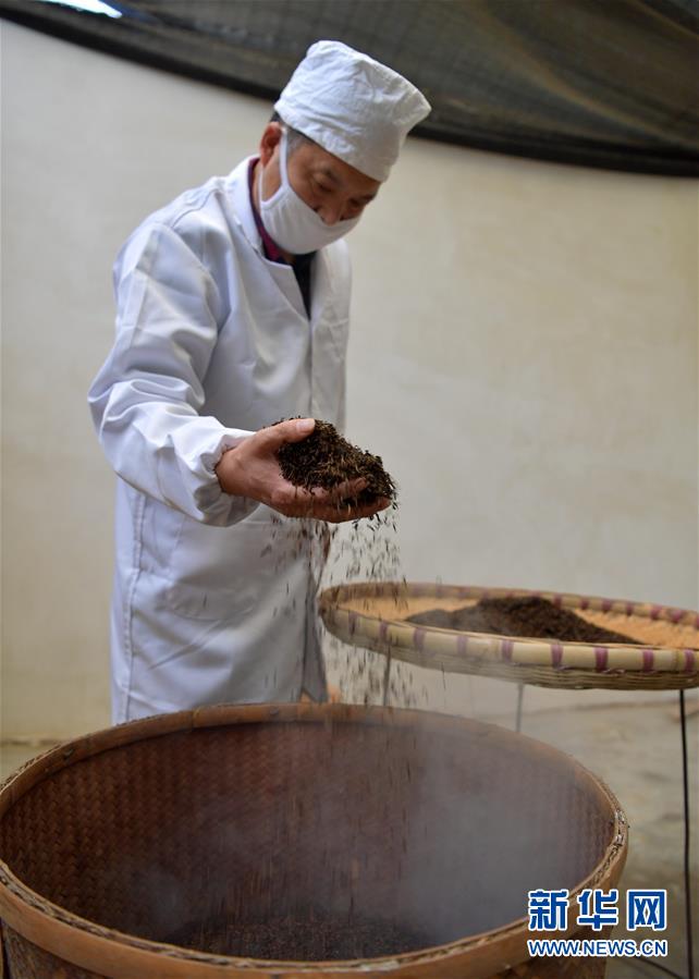 產于湖北省恩施土家族苗族自治州利川市毛壩鎮楠木村的“冷后渾”鮮葉,是制作利川紅茶最為優質的原料。工人先采下“冷后渾”茶樹鮮葉,后經萎凋、揉捻、發酵、烘烤、篩選、整形、品級等工藝,歷時十多個小時,最終制成的紅茶沖泡后湯色紅艷明亮、滋味醇厚甘爽。在茶湯冷卻后,湯色逐漸變渾,加熱后又恢復紅艷明亮,這也是“冷后渾”得名的由來。新華社發楊順丕攝