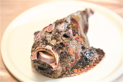 番禺九號私廚有一種奇丑無比的魚,它生活在海底60米之下,興起之時游走于珊瑚之間,懶起來一動不動,潛水之人常常將其誤認為是石頭,所以稱它為石頭魚。石頭魚渾身長刺且有毒,廚師只取其肉,棄用魚皮。它自古被視為魚中珍品,因魚肉鮮嫩,據《本草綱目》記載石頭魚能夠治療筋骨痛,有溫中補虛功效。