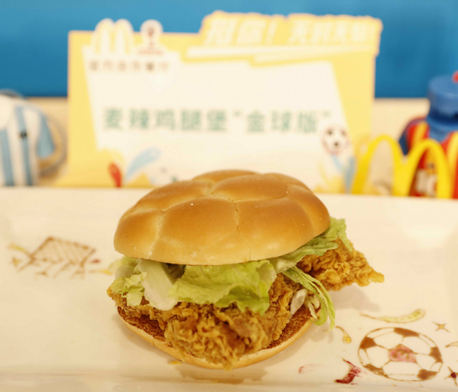 麥當勞中國最受歡迎的漢堡單品——麥辣雞腿漢堡,在FIFA世界杯期間搖身一變“金球版”,蓋上足球形狀堡頂,FIFA世界杯期間10元限時特價